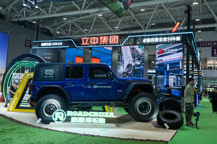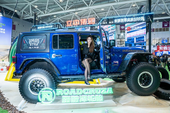 作为新大陆橡胶布局市场的另一重要力量,路酷泽轮胎此次也带来了多款特色产品,现场炫酷的牧马人安装上我们的攀岩勇士RA8000轮胎,霸气十足,吸引了越野爱好者的围观和拍照。